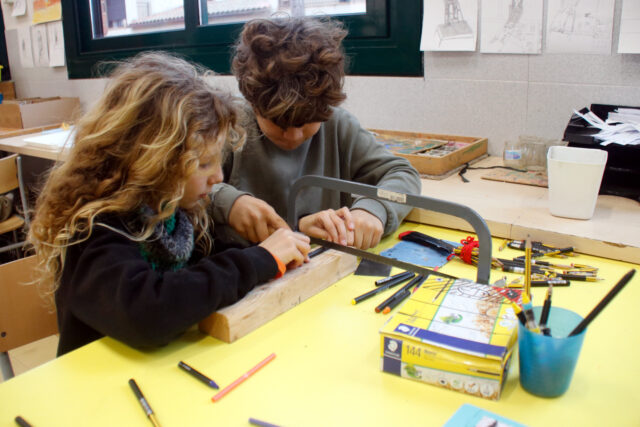 Aquesta consciència també és molt present dins les aules. Aquest curs, per exemple, els alumnes de 5è de primària han començat a llegir diaris i n’han seleccionat un article que parla de la moda ràpida -la coneguda com a ‘fast fashion’- i els riscos que porta aparellat el consumisme massiu i els residus que genera. Però d’aquesta classe també n’ha sortit un invent que té una aplicació directa en el dia a dia de l’escola: l’aprollapis.