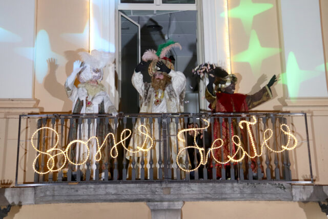 ACN Blanes – Els Reis d’Orient han tornat a arribar per mar aquest dilluns 5 de gener a Blanes (Selva) amb un castell de focs que els ha donat la benvinguda al municipi. L’alcalde, Jordi Hernández, ha recordat que “Blanes és una ciutat de pólvora”, en referència al tradicional festival de focs artificials que es fa a l’estiu des de fa més de mig segle. Una vegada han arribat a terra, Ses Majestats han passejats pels principals carrers del municipi i han baixat de les carrosses per acabar l’últim tram del recorregut de la cavalcada a peu, on han saludat a tots els infants que els esperaven. Una vegada a l’ajuntament, han pujat fins al balcó on l’alcalde els ha fet entrega de les claus de la ciutat perquè puguin entrar a les cases aquesta nit.