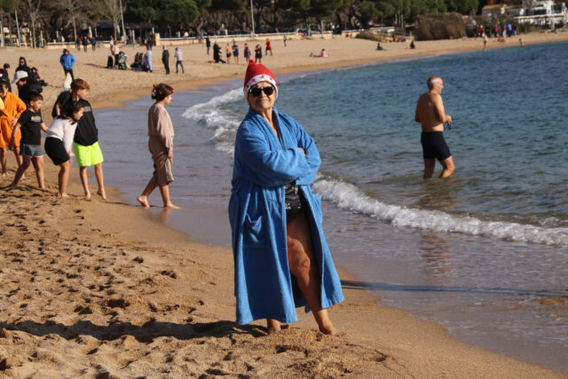 Entre els participants hi havia l’Agustí, guixolenc, que habitualment fa la primera remullada a la platja de Sa Conca. “Aquest any he volgut participar aquí a la platja de Sant Feliu i ho he gaudit molt, ha estat molt divertit”, explica, tot i reconèixer que “l’airet de garbí que bufa és fresquet”.
