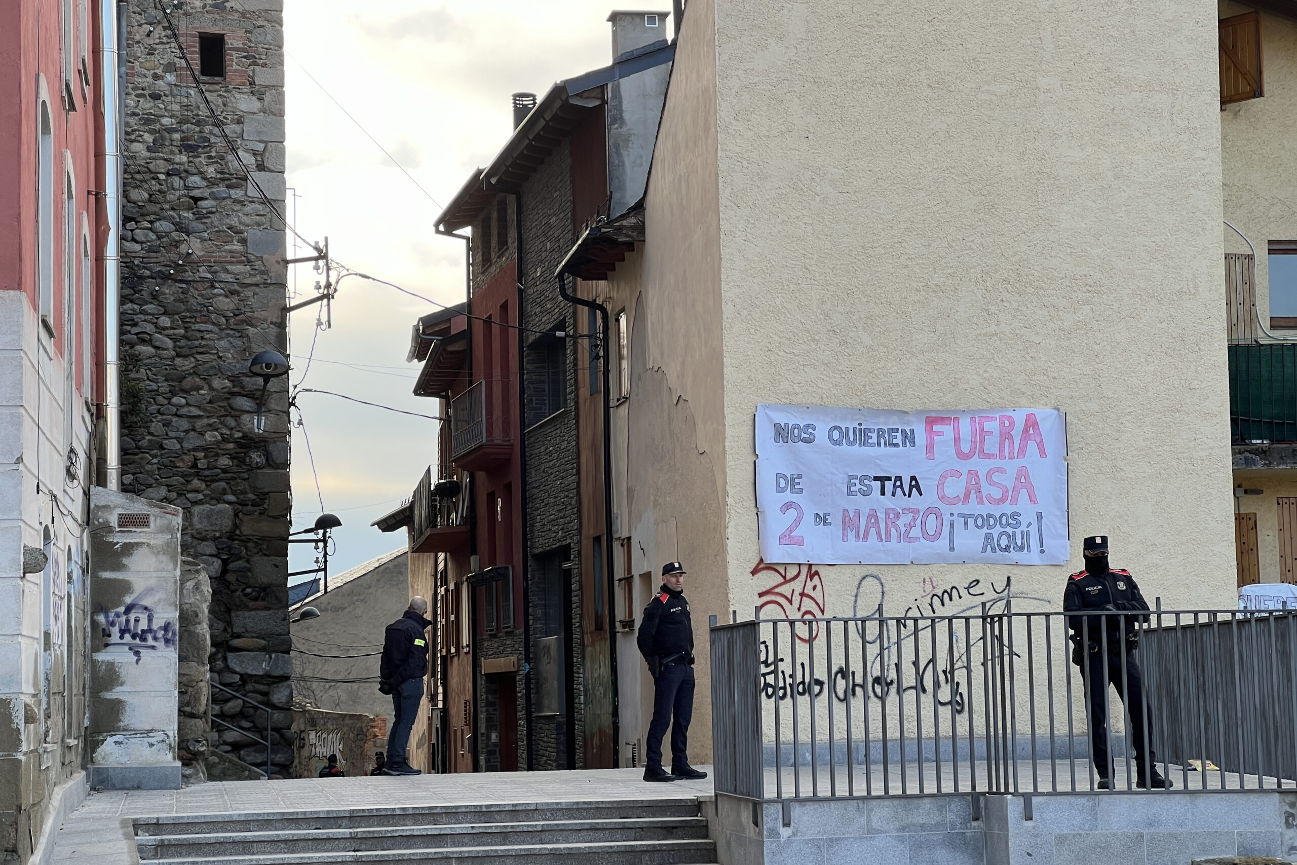 ACN Puigcerdà – Quatre famílies que vivien en un bloc de pisos del carrer Rabadans de Puigcerdà han estat desnonades aquest dilluns. Segons han informat des del Sindicat d’Habitatge de la Cerdanya, que ha organitzat una concentració de suport als afectats, una de les famílies va marxar aquest diumenge i la resta ho han fet durant el matí. També han explicat que entre els residents hi havia menors d’edat, un dels quals pateix una discapacitat. A més, han denunciat que els afectats havien entrat als pisos amb un contracte verbal i que, amb el temps, van descobrir que havien estat “enganyats”. Així, lamenten que s’estigui fent fora a diverses famílies quan, per contra, hi ha moltes segones residències buides a la comarca.