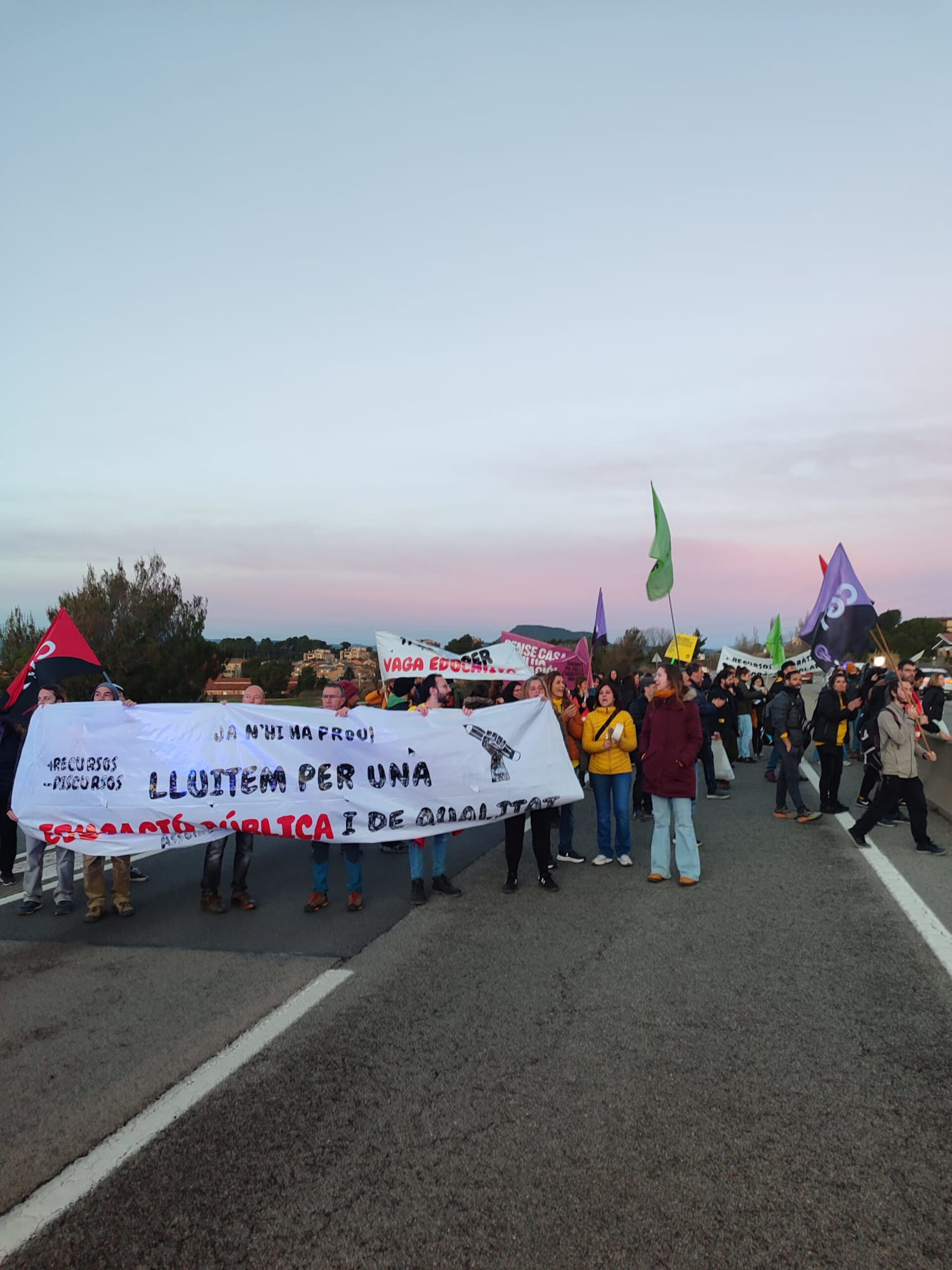 ACN Barcelona – Les protestes dels docents amb motiu de la vaga educativa han començat a les carreteres. Així, s’han tallat diverses vies a partir de les set del matí. A Barcelona, s’ha tallat la Ronda Litoral en els dos sentits a l’altura de la Vila Olímpica durant uns 45 minuts, la Gran Via a la zona de la Campana, la Ronda de Dalt i l’avinguda Meridiana d’entrada a Barcelona. A Mataró, els manifestants han tallat la C-32 en sentit Barcelona durant mitja hora. A les comarques gironines es troba tallada l’N-II a Vilamalla i les sortides de Figueres sud i Girona sud a l’AP-7. Segons el Servei Català de Trànsit, també es troben tallades la C-55 a Manresa i a Olesa de Montserrat, la C-59 a Moià, la C-31 a l’Hospitalet de Llobregat i la C-37 a Valls.