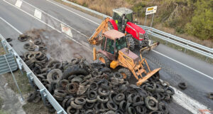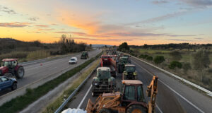 Desenes de tractors de pagesos tallen l’AP-7 a Pontós en protesta...