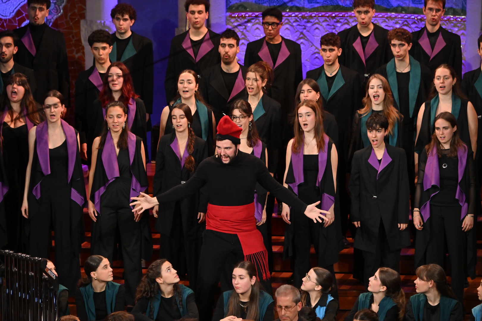 ACN Barcelona – Els Cors de l’Orfeó Català i el Cor de Cambra del Palau de la Música han ofert aquest divendres el tradicional Concert de Sant Esteve. El programa ha inclòs peces de Mompou, Ollé i Sabaté, Baldrís, Hagenberg o Prat Vives, entre d’altres. A banda, el compositor resident del Palau Marc Timón ha ofert la seva versió del ‘Blanc Nadal’ de Guinovart. El Palau de la Música ha omplert l’aforament i l’escenari, en un espectacle que ha comptat amb la participació de l’actriu Lloll Bertran i de la presentadora Helena García Melero. La vetllada ha acabat amb la interpretació d’El Noi de la Mare’ i amb ‘El cant de la senyera’, durant la qual s’han exhibit estelades independentistes i s’han proferit crits d’independència.
