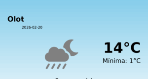 Predicció Meteorològica per a Olot – 1 de març de 2026 Avui, Olot es presenta amb un temps força humit i plujós. La temperatura màxima...
