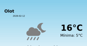 Predicció Meteorològica per a Olot – 1 de març de 2026 Avui, Olot es presenta amb un temps força humit i plujós. La temperatura màxima...