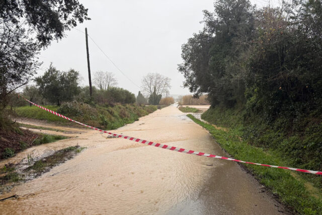 Riembau explica que, normalment, la riera està seca i que avui baixa amb “cinc o sis metres d’aigua”. L’alcalde assenyala que neix a les Gavarres i que recull tota l’aigua que s’acumula al pla que hi ha just abans de desembocar a la riera que passa per Palau-sator.