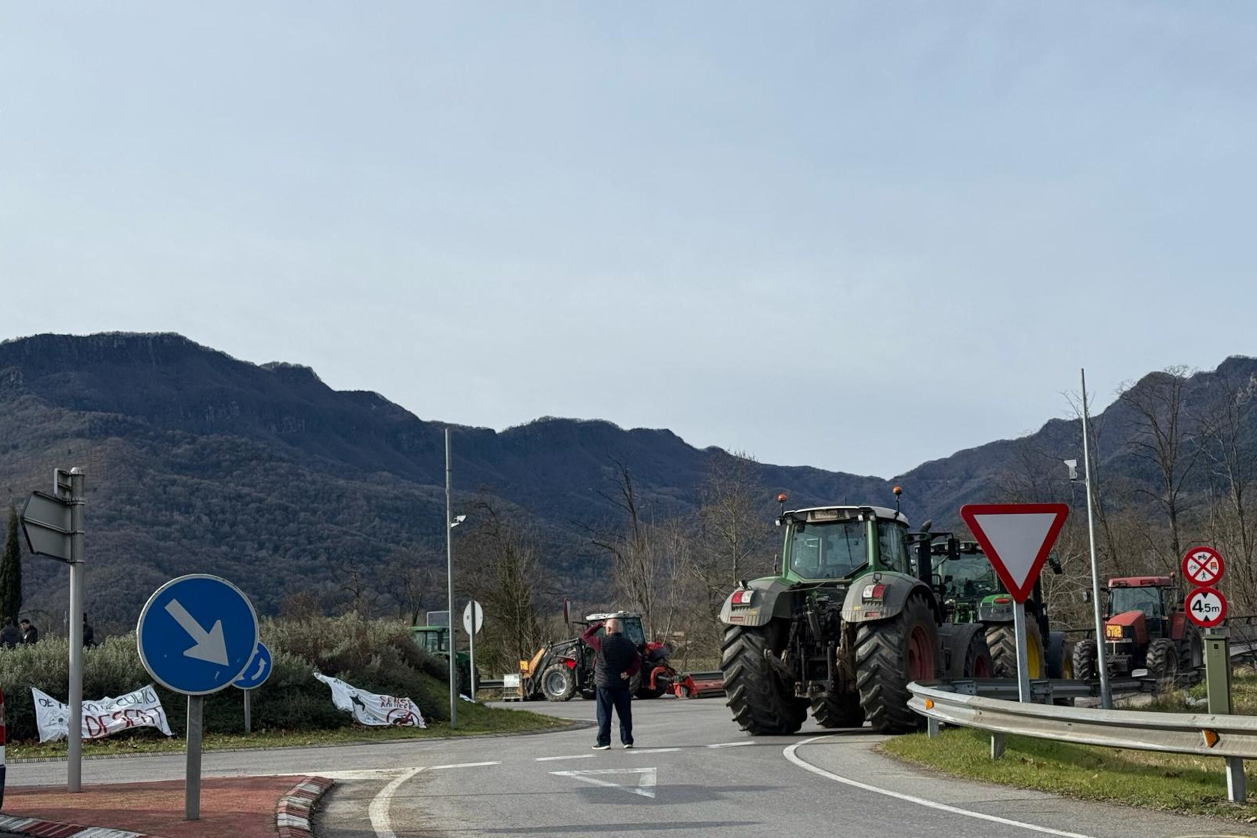 ACN Les Preses – Una trentena de persones bloquegen des de les vuit del matí la rotonda d’accés als túnels de Bracons que uneix Osona amb la Garrotxa. Ho fan convocades per les entitats ecologistes i per Revolta Pagesa i Unió de Pagesos, en contra de la variant d’Olot i les Preses. Argumenten que l’obra “trinxa el territori” i fa malbé l’aqüífer. De fet, els manifestants assenyalen que aquesta infraestructura “va en contra de la majoria” i demanen que s’aturi el projecte “tal com està plantejat”. En aquest sentit, el membre de Salvem les Valls i pagès, Moisès Maspujol, assenyala que estan disposats a asseure’s a parlar d’un nou traçat, però que “en cap cas” poden acceptar l’actual. Per la seva banda, els transportistes es queixen perquè “tornen a rebre”.