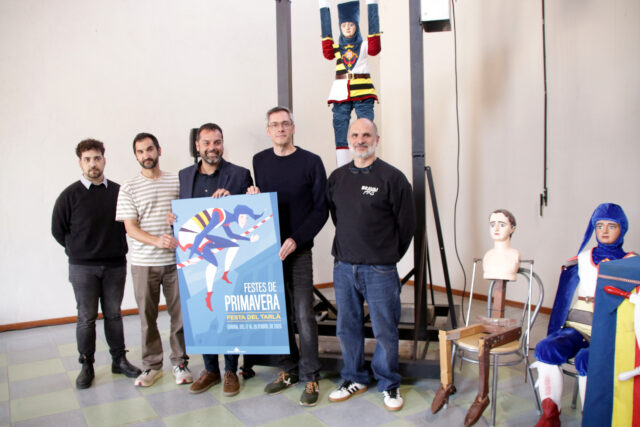 El cartell d’aquesta edició, obra d’Albert Castro, situa el Tarlà en primer pla, amb la voluntat de “convidar a tothom a participar en les Festes de Primavera”, com ha explicat l’autor. Predomina el color blau, en referència a la seva vestimenta, i s’hi incorporen elements icònics de la ciutat, com la Catedral i les façanes del carrer de l’Argenteria.