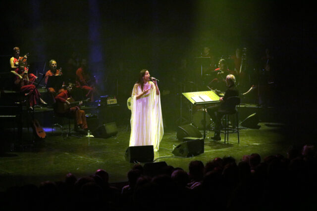 El concert ha començat amb ‘Vinc d’un poble’, que el públic ha corejat amb entusiasme, i ha continuat amb ‘Em diràs adéu’ i ‘Els ocells’, una peça que ha guanyat majestuositat amb l’acompanyament de l’orquestra.