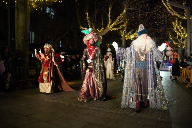 La cavalcada ha començat a la Plaça Clarà, on es va instal·lar el campament reial abans de l’esdeveniment. Els Reis, adornats amb música i espectacles, han recorregut els principals carrers, incloent el Carrer Mulleras i el Passeig d’en Blay, fins a arribar al seu escenari al Firal Petit.