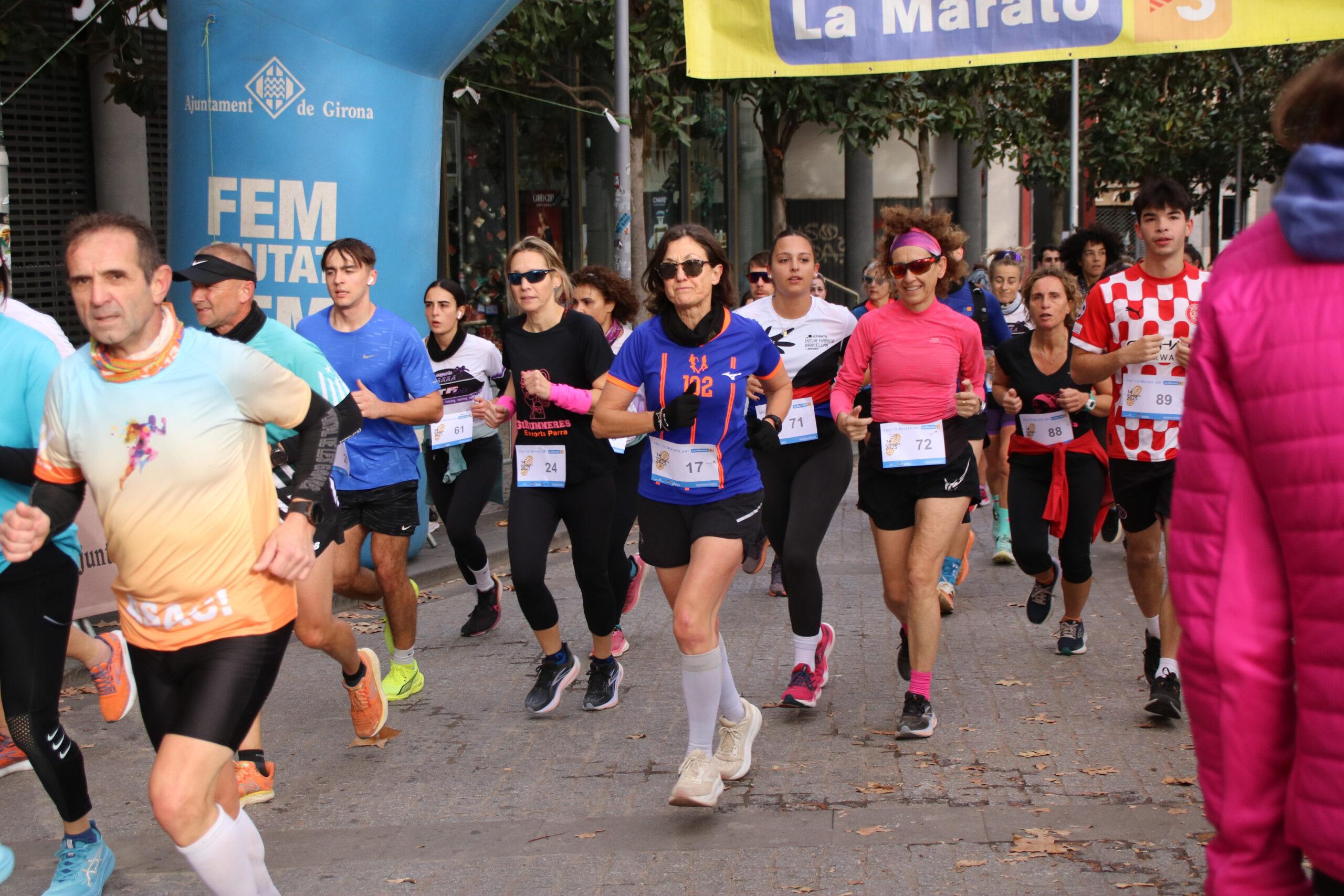 A Girona, una de les activitats solidàries més consolidada és la Marató per a la Marató, que organitzen conjuntament els Bombers, el Club d’Atletisme i el departament d’esports de l’Ajuntament de Girona. Aquest any se n’ha celebrat la 19a edició i, com a novetat, s’ha optat per modificar el format i fer una Mitja Marató, és a dir, 21 quilòmetres.