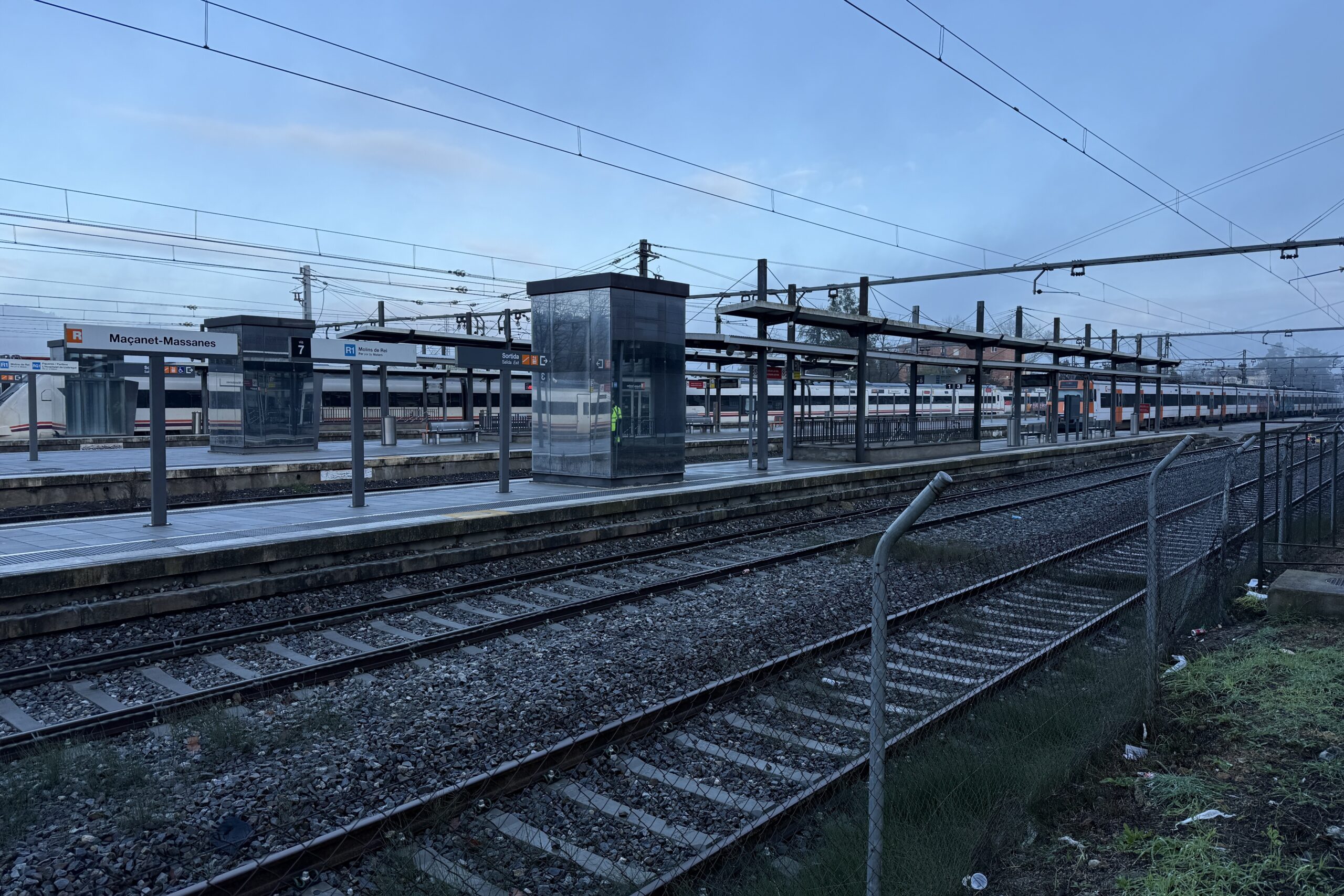 ACN Maçanet de la Selva – L’estació de trens de Maçanet-Massanes (Selva) ha quedat totalment deserta aquest dimecres al matí per l’aturada de Rodalies a causa de la llevantada de dimarts. Les taquilles segueixen obertes amb una persona que informa de la interrupció del servei, tot i que aquesta treballadora assegura que ja no s’hi ha acostat ningú. L’estació es troba en un punt enmig de Maçanet de la Selva i Massanes i això obliga que la gent hagi d’anar-hi en cotxe. Mentrestant, la megafonia repeteix que el servei està aturat fins que no es compleixin les garanties de seguretat. En paral·lel, els operaris d’Adif treballen per reparar les vies del tren mentre no es reprèn el servei.