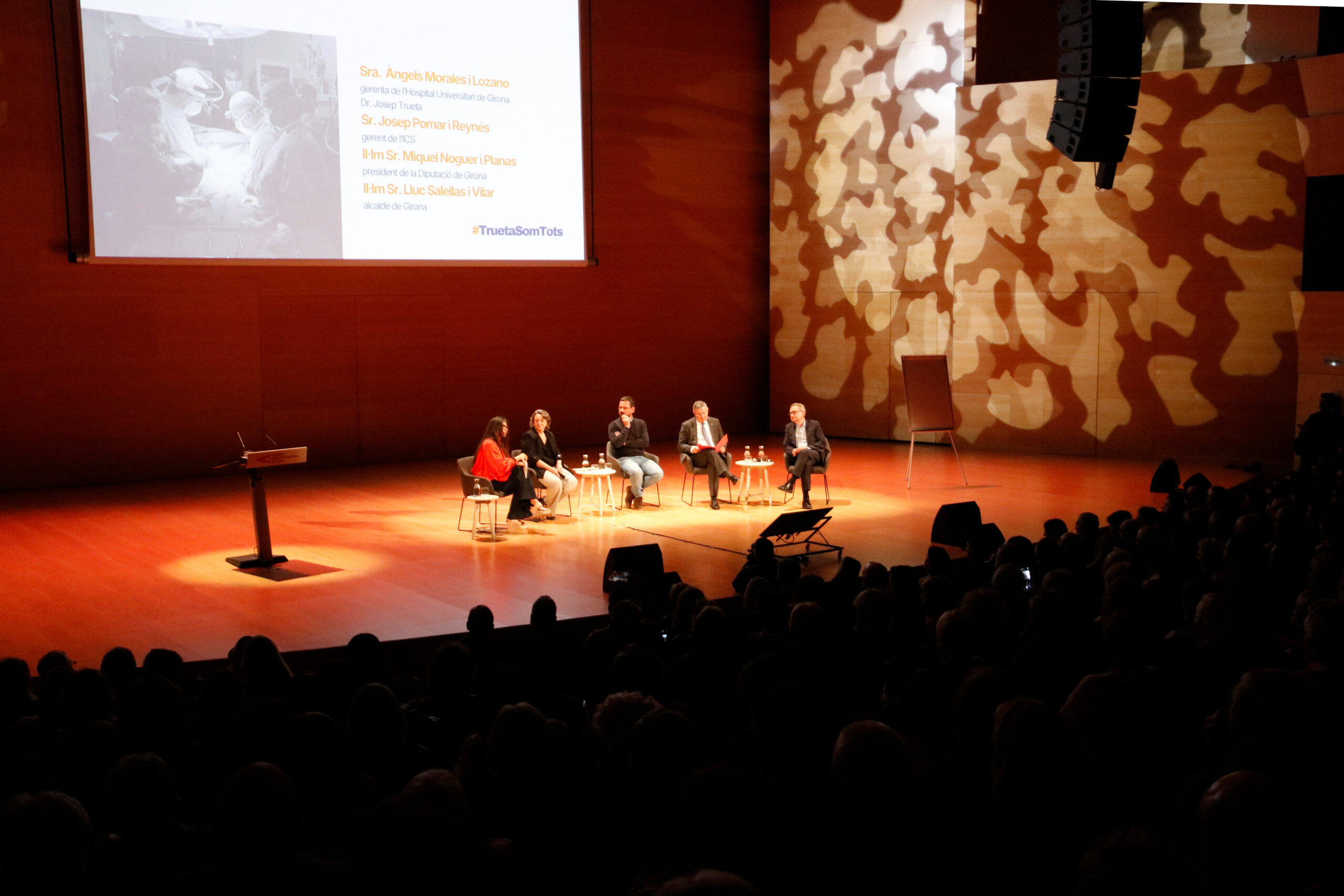 L’acte ha començat amb la projecció d’un vídeo històric que ha repassat els 70 anys d’història del Trueta, assenyalant alguns moments cabdals com ara la construcció de l’edifici, el canvi de nom deixant enrere el rastre del franquisme, les primeres extraccions d’òrgans o la creació de la Unitat de Cures Intensives (UCI).