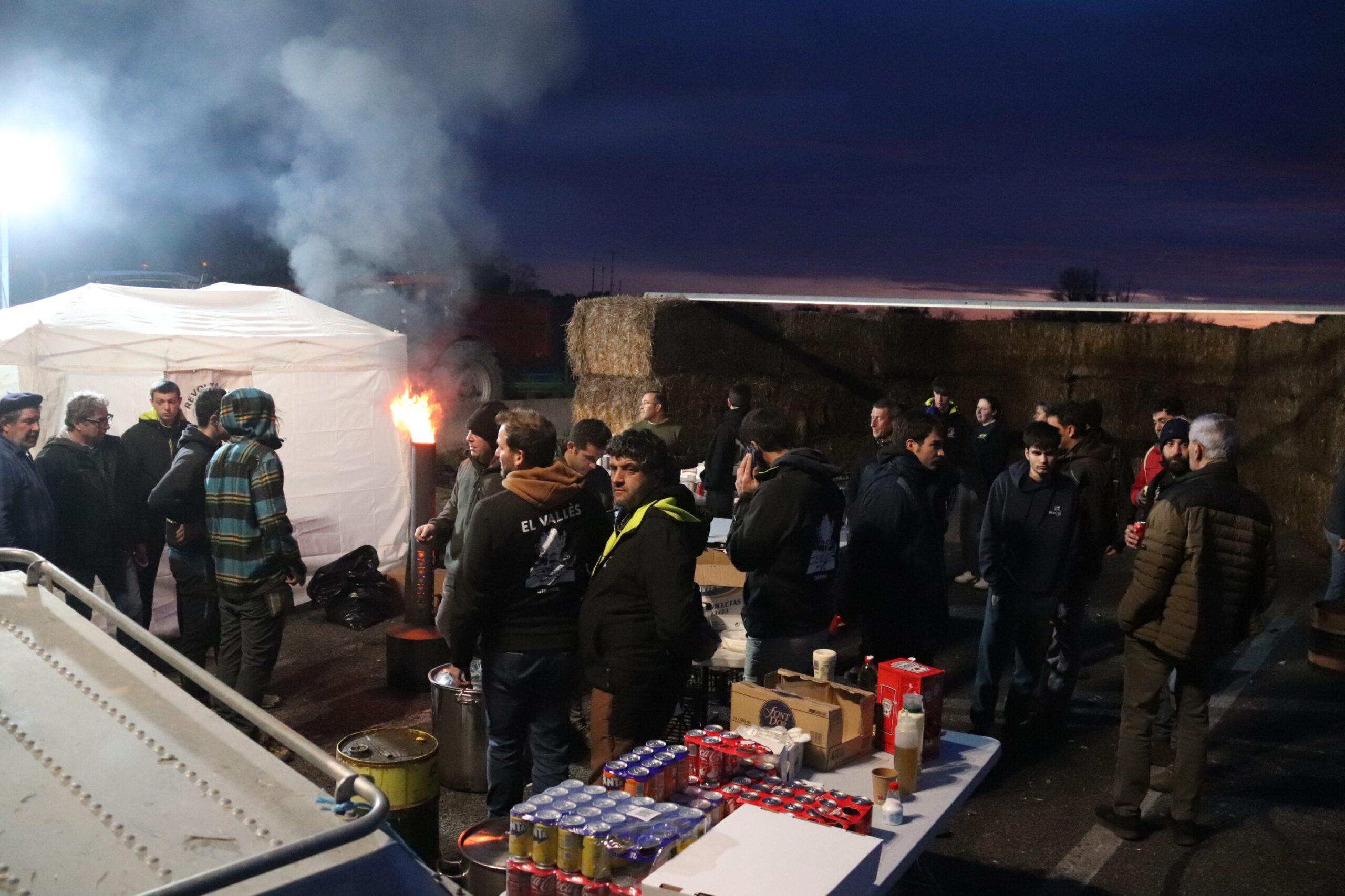 ACN Pontós – Més d’un centenar de pagesos es preparen per passar la nit a l’AP-7 a Pontós (Alt Empordà) i ja han posat generadors de llum, estufes i han improvisat coberts amb veles i bales de palla. El Gremi de la Pagesia Catalana – Revolta Pagesa també prepara les hamburgueses que donaran per sopar i avituallament amb productes del territori que han portat els ramaders i agricultors que participen en la protesta. Per passar la fred, han obert una estufa d’oli i els ulls estan posats en el cel, per veure si caurà alguna gota dels núvols negres que sobrevolen des de mitja tarda. Els concentrats asseguren que tenen provisions per allargar la protesta “els dies que calgui”.