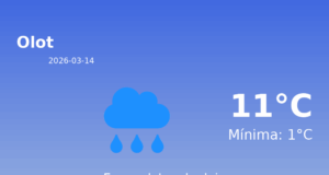 Predicció del Temps per a Olot - 14 de març de 2026 Benvinguts a la predicció meteorològica per a avui a Olot. Avui, el temps...