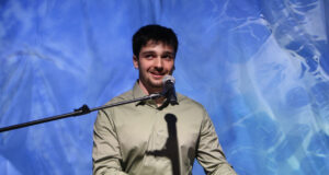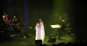 Judit Neddermann s’enlaira a l’Auditori de Girona al costat de la...