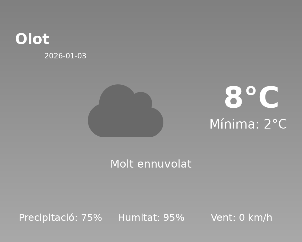 En el dia d’avui, 3 de gener de 2026, Olot experimentarà unes condicions meteorològiques típiques per a l’hivern. Amb una temperatura màxima que arribarà als 8 graus i una mínima de 2 graus, els residents haurien de preparar-se per a un dia força fred.