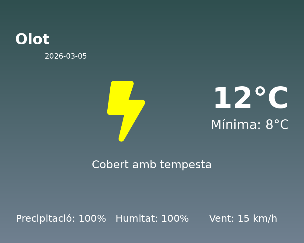 Bon dia, Olot! Avui, el temps ens porta una jornada marcada per condicions força inestables. Els moments per gaudir del sol seran escassos, així que prepara’t per a un dia plujós.