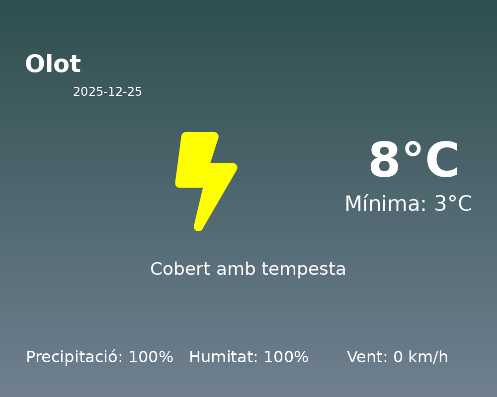 Bon dia i molt Bon Nadal! Si us trobeu a Olot avui, és important estar preparats per a un dia molt humit. Vegem la previsió detallada per aquest 25 de desembre de 2025.