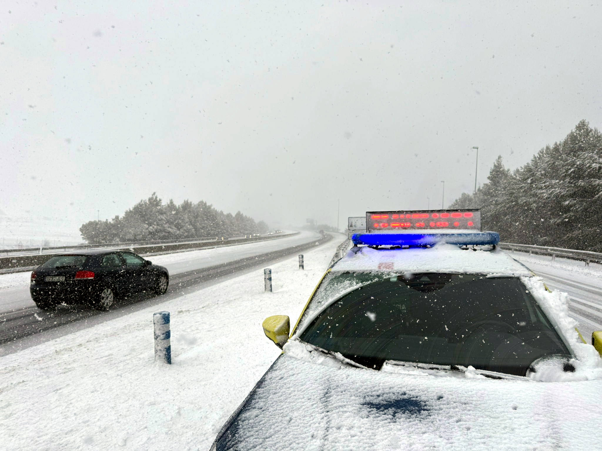 També calen equipaments especials a la C-1311 entre Tremp i el Pont de Montanyana, pell coll de Montllobar; l’LV-5134 a les Valls d’Aguilar; l’L-504, entre Llavorsí i Lladorre; la BV-4031, entre Castellar de n’Hug i Toses, pel coll de la Creueta; la C-563 entre Josa i Tuixén, pel coll de Josa; l’L-511, entre Coll de Nargó i Isona, pel coll de Bóixols; l’L-510 entre Tírvia i Alins; i l’LV-4241 entre Lladurs i Guixers. Estan tallades per la nevada la T-700 entre l’Espluga de Francolí i Prades; la TV-7004, entre Ulldemolins i Vilaclara; la TV-7005 a Vilanova de Prades; i la GIV-5201, entre Arbúcies i Viladrau. Finalment, a més d’una vintena de carreteres hi ha perill per presència de neu/gel a la calçada, destacant la C-25/Eix Transversal entre Cervera i Rajadell, o l’AP-2 entre l’Albi i l’Espluga de Francolí.